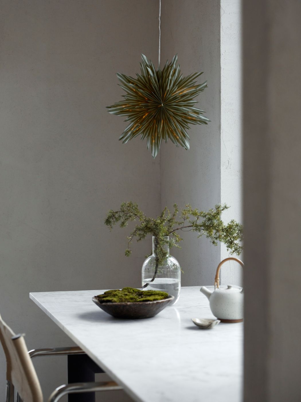 En grøn stjerne fra svenske Watt & Veke, som er håndlavet i Indien. Helena er lavet af semitransperent papir med en særlig ombréeffekt i grøn, som skaber en helt særlig dybde. Helena stjernen er flot at hænge i vinduet og især, når mørket falder på og der kommer lys i den, vil den være en fryd for øjet - både for dem der er inde og dem, der går forbi huset. Eller bare dejligt, når man kommer hjem til sit mørke hus om aftenen og se, der er lys i stjerne, vil bringe glæde for alle.