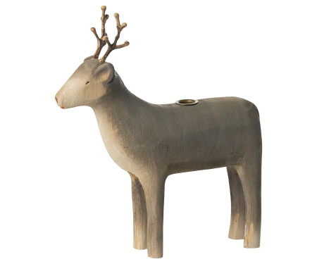 Rensdyr i træ, som er håndlavet og kan variere i farverne. Rensdyret er flot som en lille dekoration og kan også bruges som en lysestage.