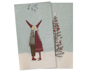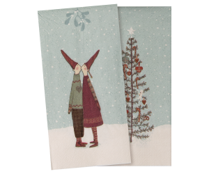 Pixyservietten fra danske Maileg er inspireret af Dorthe Mailils personlige tegninger. De har forskelige prints på hver side. Printet er gennemgået en grafisk proces, så de er meget stemningsfulde. Velegnet som juleservietten. Alle servietter fra Maileg er i høj kvalitet og smukke i udtrykket. Giver et personligt præg til din borddækning.