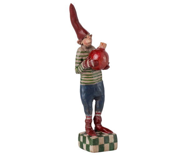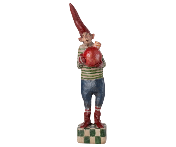 Denne noilly nisse nr. 32 står mussestille og holder godt fast på den røde julekugle. Han er fra den nye julekollektion fra Maileg og han er næsten magen til Noilly Nisse nr. 32 - men med en grøn kugle. Find ham her Noilly Noël nr. 32.