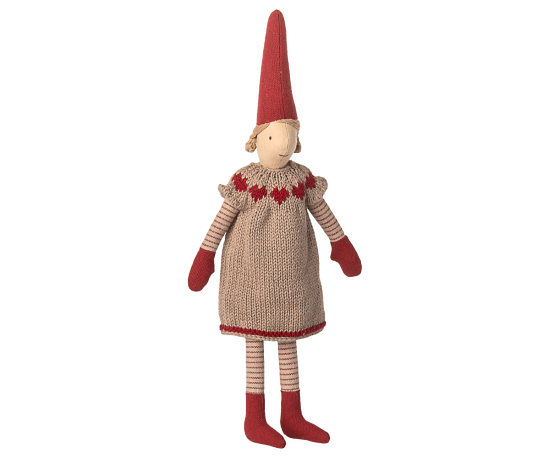 Maileg har de flotteste og mest uimodståelige nisser. De er elsket af store og små, unge og gamle og alt midt i mellem. De kommer i de bedste kvaliteter, som hør og bomuld. Designet er yderst smagfuldt. Striktrøjer, stribede strømpebukser, fløjls overalls, hørnederdel - vi kan blive ved. Nisserne kommer i mange forskellige størrelser. Hver år kommer der nye til kollektionen. De kan alle mixes på kryds og tværs, så din nisse familie bliver lige så mangfoldig, som din rigtige familie. De er så fine at have sammen i de forskellige størrelser.