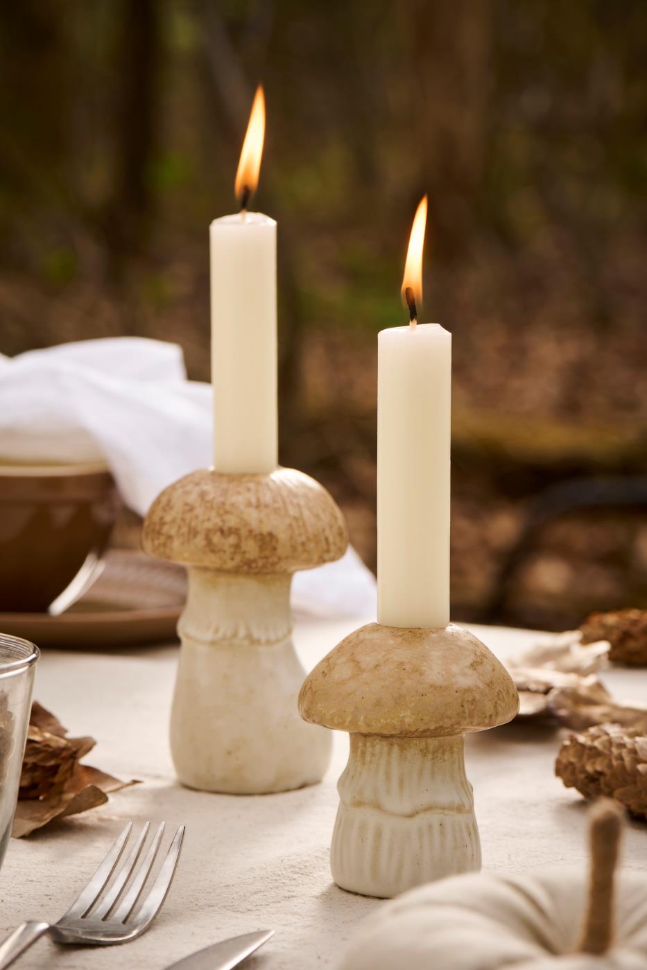 Fin og charmerende lysestage til almindelige kronelys eller til de kortere bedelys. Lysestagen er formet som en svamp og giver et stemningsfuldt element til dit bord eller din vindueskarm.