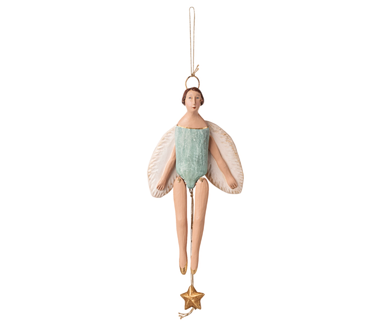 Danske Maileg har skabt disse fine engle, der kan bevæges forsigtigt som en lille sprællemand. Hver engel er håndlavet med stor kærlighed til detaljen og malet i bløde, afdæmpede farver, som passer smukt ind i Mailegs poetiske univers.