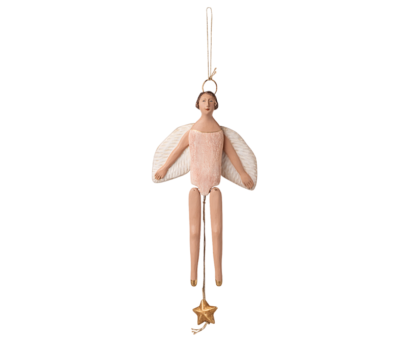 Danske Maileg har skabt disse fine engle, der kan bevæges forsigtigt som en lille sprællemand. Hver engel er håndlavet med stor kærlighed til detaljen og malet i bløde, afdæmpede farver, som passer smukt ind i Mailegs poetiske univers.