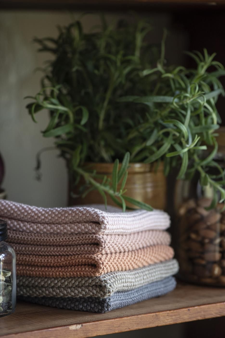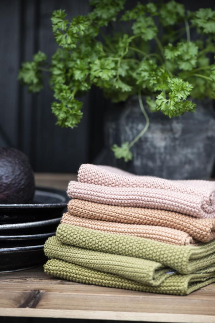 Karklude kan man ikke få for mange af – det er rart at have nogle, der passer til indretningen i køkkenet. De strikkede karklude suger godt og tåler mange vaske. Du kan også købe matchende køkkenhåndklæder i samme kvalitet og farve. Karkludene fås i flere farver.