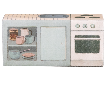 De små mus elsker at være i køkkenet. Her får du et fint lille køkkensæt med bordplade, metalvask for et autentisk udtryk, en gryde, 2 kopper, 2 tallerkener og en lille dåse – alt det, der skal til for at skabe hyggelig leg i museuniverset.