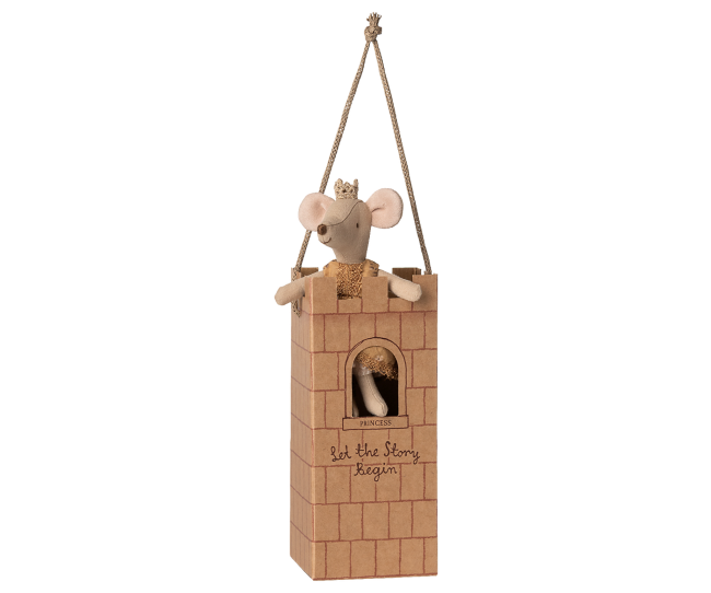 Hun kommer i en charmerende æske formet som et prinsessetårn, komplet med snor, så den kan bæres rundt som en lille taske. En skøn gaveidé og oplagt til mange timers leg sammen med de andre figurer i Mailegs magiske univers.