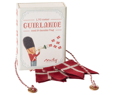 En lang og stemningsfuld flagguirlande med små Dannebrogsflag – perfekt til fødselsdage, jubilæer og alle de særlige dage, der fortjener lidt ekstra pynt. Snoren er rød og hvid, præcis som flaget, og skaber et klassisk og festligt udtryk.