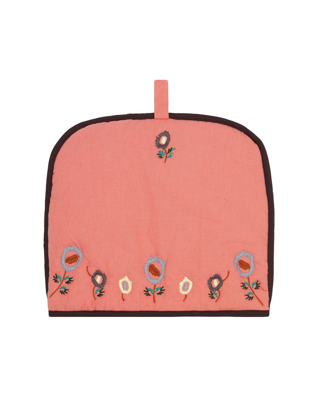 Tevarmeren fra Habiba er blevet en fast og elsket del af kollektionen. Her i et smukt berry-farvet print med fine broderier – genkendelige fra brandets tøjkollektion – afsluttet med et elegant kantbånd, der giver et helstøbt og dekorativt udtryk.