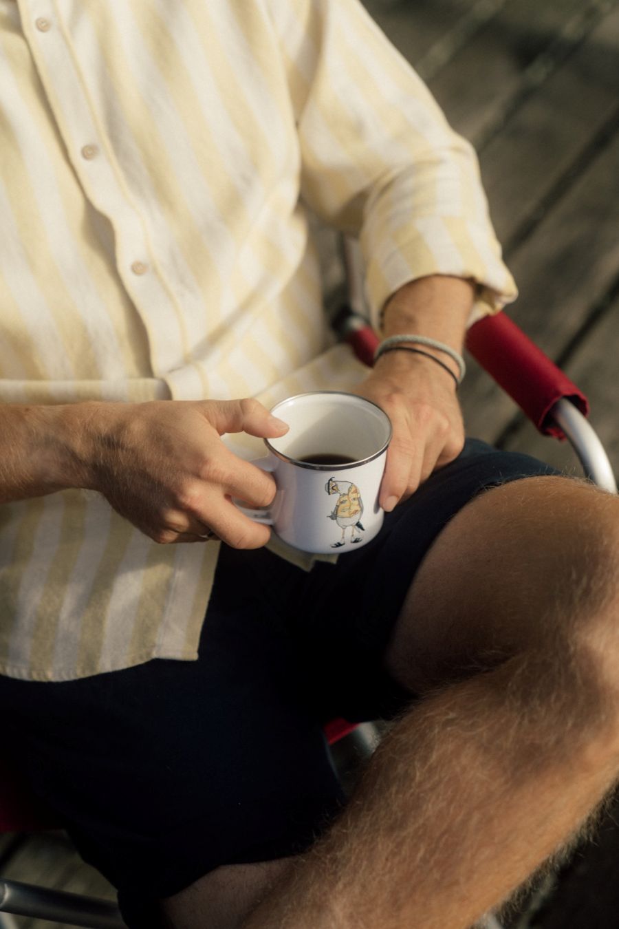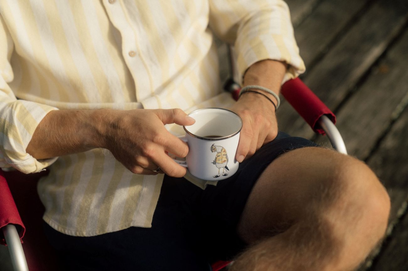 Emaljekrus med et skønt og humoristisk print af en fræk måge iført skjorte, strømper i sandaler og solbriller. Et charmerende krus med masser af personlighed, som passer perfekt til kaffe, te eller varm kakao – både derhjemme og på farten.