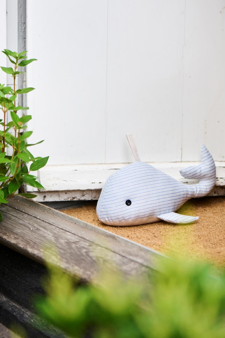 Slip for døre, der smækker i vinden – denne charmerende dørstopper holder døren sikkert på plads. Dørstopperen er formet som en sød hval med fine striber, der tilfører et hyggeligt og legende udtryk til indretningen.