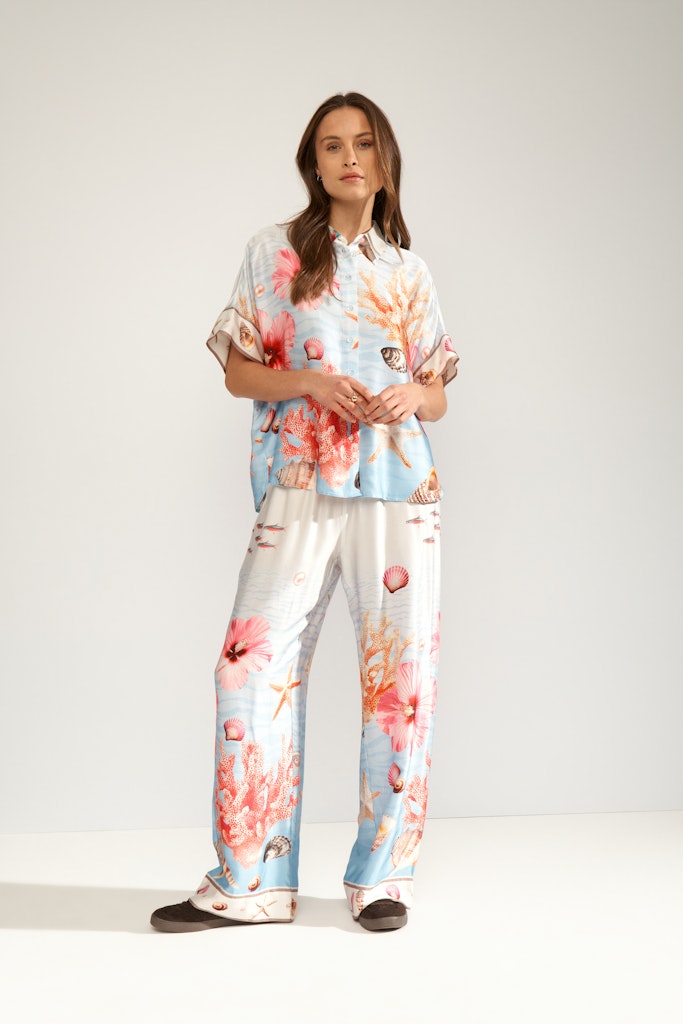 Der kan tilkøbes et par matchende bukser i samme print, hvis du ønsker et gennemført sæt, men skjorten er også nem at style alene. Den fungerer perfekt både til hverdag og fest – alt efter hvordan du vælger at style den.