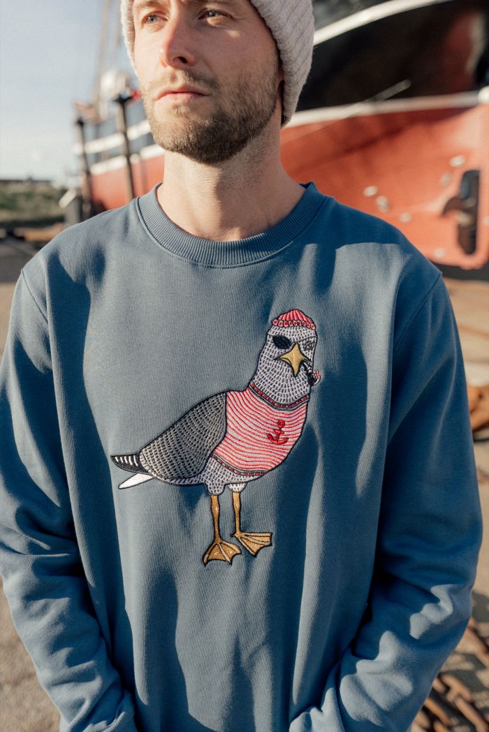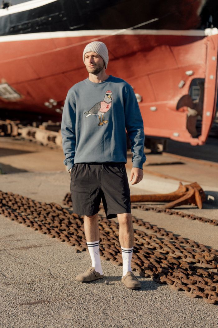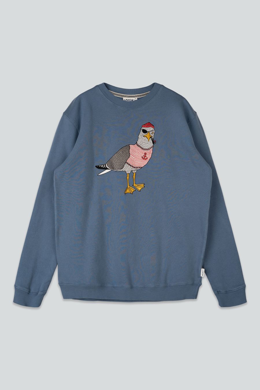 Klassisk crewneck sweatshirt fra danske LAKOR med et flot broderi af en cool måge iført fuldt udstyr på brystet. Modellen er en tidløs sweat med lange ærmer, rund hals og ribkanter ved alle afslutninger, som giver et rent og velafbalanceret udtryk.