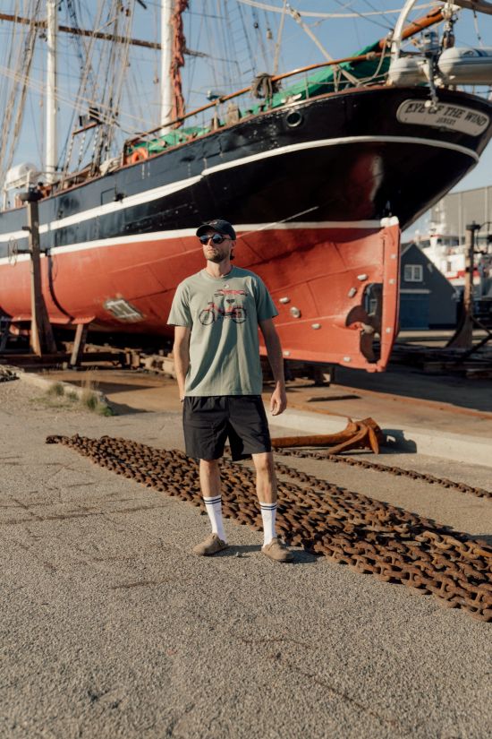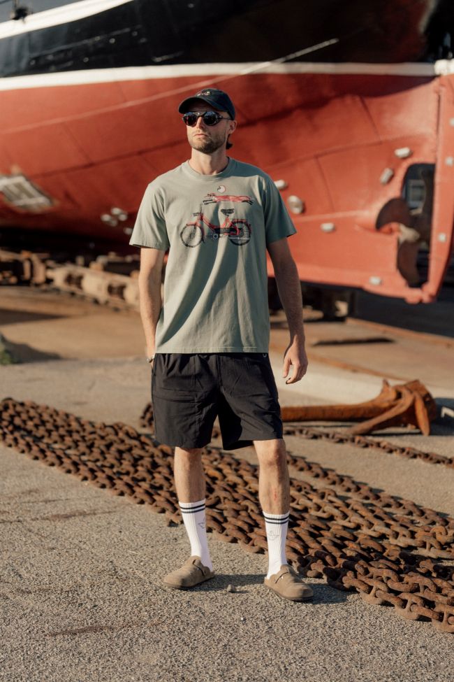 Midt i det enkle design finder du et håndtegnet motiv af en elg, der har tilpasset sig den nye virkelighed. Motivet er både charmerende og humoristisk og rummer den fortællende finurlighed, som LAKOR er kendt for. Det giver T‑shirten personlighed og et glimt i øjet – uden at tage overhånd.