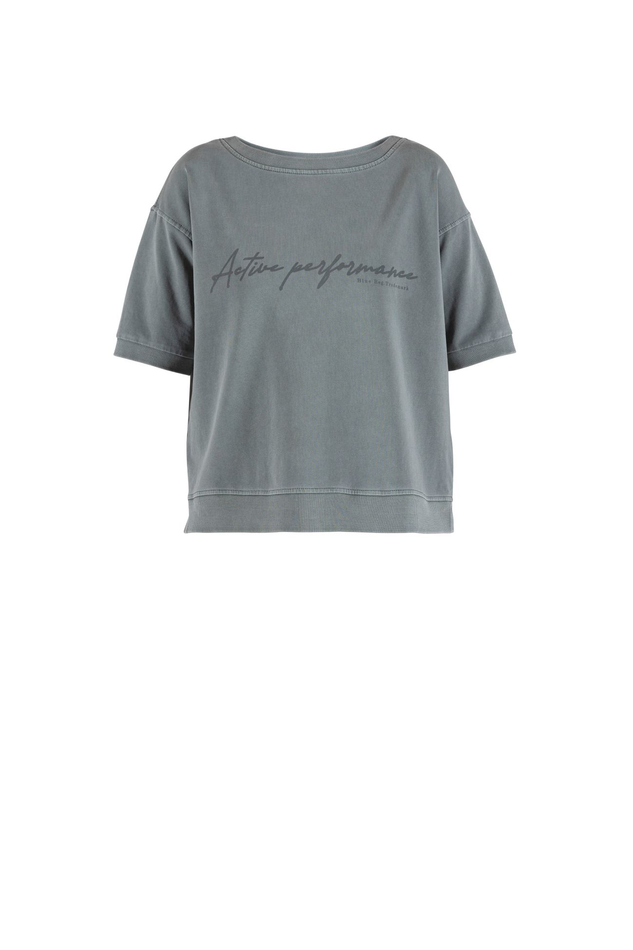 En kortærmet bluse i blød bomuldsjersey med stræk og en let vasket overflade. Pasformen er rummelig med sænkede skuldre og en lige silhuet, som gør blusen nem og behagelig at have på. Den lette antique wash giver et afslappet vintage‑look og tilfører lidt kant til det enkle design.