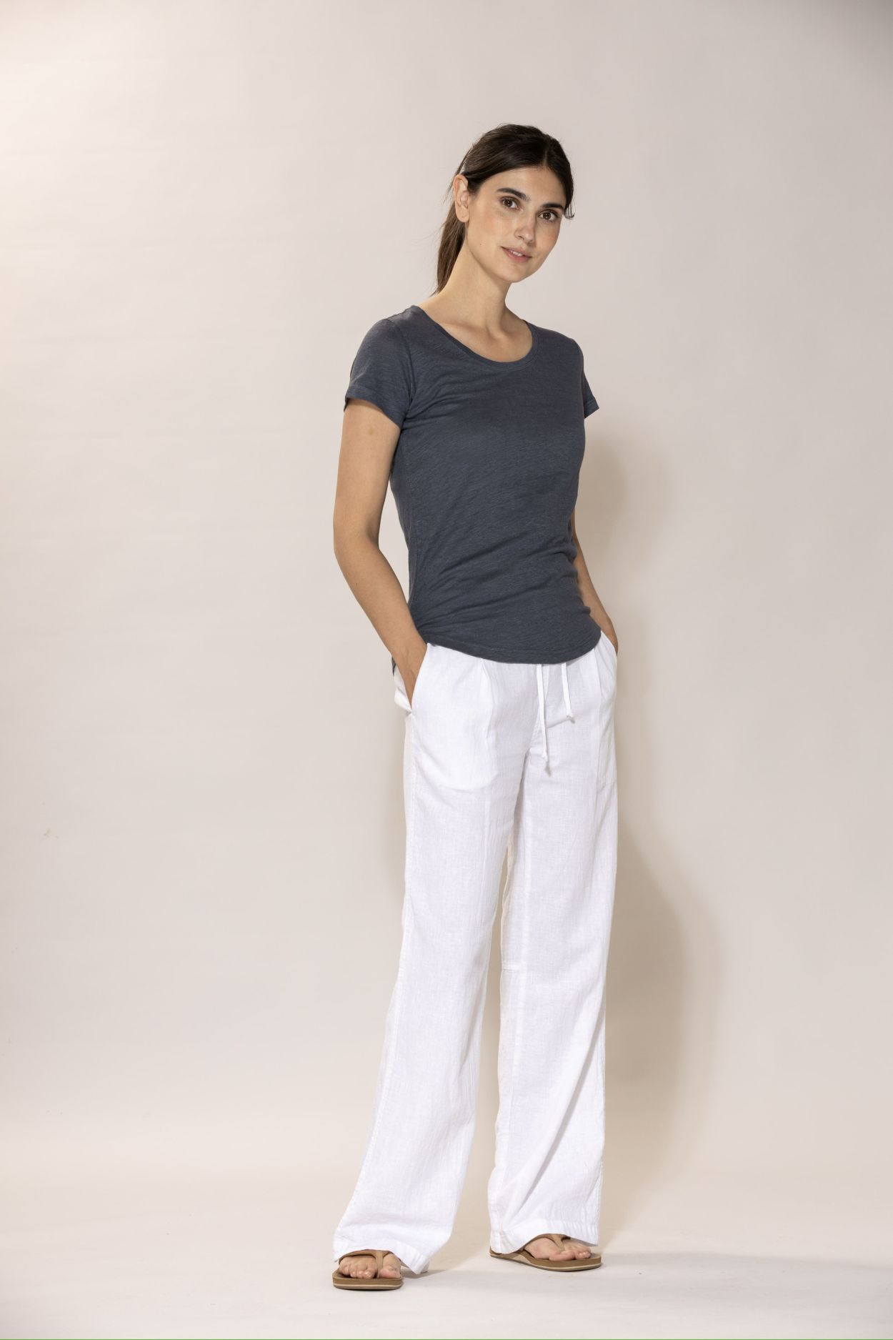 Blue - Lotta linen Tee - Dusty Navy