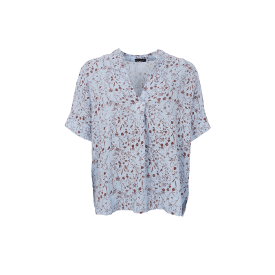 Blomsterprintet har en akvarel‑agtig lethed, der understreger blusens afslappede stil og gør den nem at kombinere med både ensfarvede bukser, shorts og nederdele. Farvespillet i de blå toner giver et naturligt og sommerligt look, som fungerer lige så godt til hverdag som til ferie.