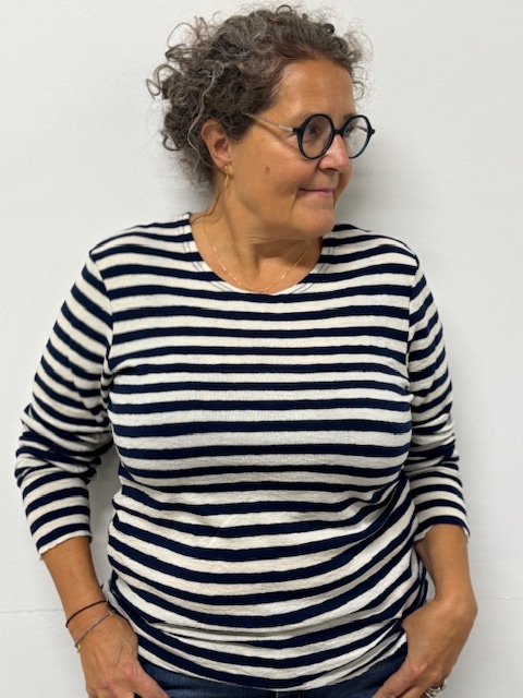 By Basics blusbar langærmet bluse med rund hals og rå kanter i 100% merinould. Vi er vilde med denne model her i Læsøshoppen og har den i mange farver og striber.