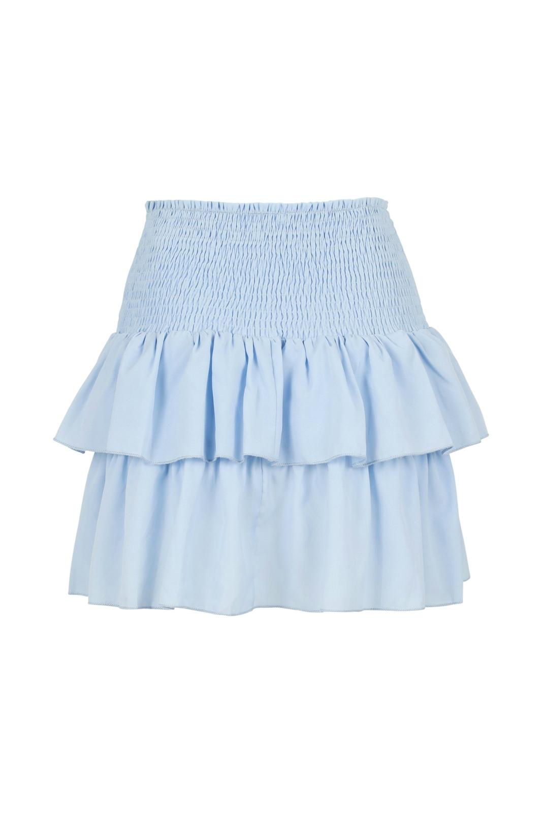 Fin, feminin og sommerlig kort nederdel med et let og elegant fald. Nederdelen er designet med to lag, som giver smuk bevægelse, og en diskret slids foran, der tilfører et sofistikeret twist uden at bryde det rolige udtryk.