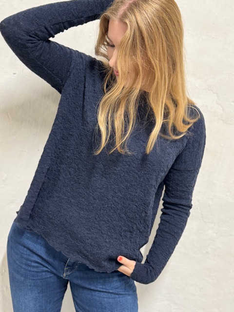 Skøn struktur på denne langærmede bluse i 100% merino bubble wool. Det er samme kvalitet, som den velkendte 100% merino uld, men med en mere let og bølget struktur, som er inspireret af vores natur. Denne bluse er lidt loose i modellen. Der har rund hals, vidde i omfanget og påsatte dropdown ærmer, der er ekstra lange, så du kan holde varmen, trække dem ned over håndleddet eller også bare lade dem sidde ved håndleddet. Kanterne er lige sømmet løs rundt - i modsætning til style 4002, som har en rå kant. Den flotte struktur gir et særligt flot look og virker også lidt luftig. Den kommer kun i 3 størrelser, fordi der er overlap på størrelserne. En utrolig lækker og smart strik, som holder i mange år - både mht kvalitet og stil. Ønsker du en mere tætsiddende model, kan du med fordel gå en størrelse ned. Billedet med kvinden er for at du kan se modellen på - det er ikke den rigtig farve, hun har på.