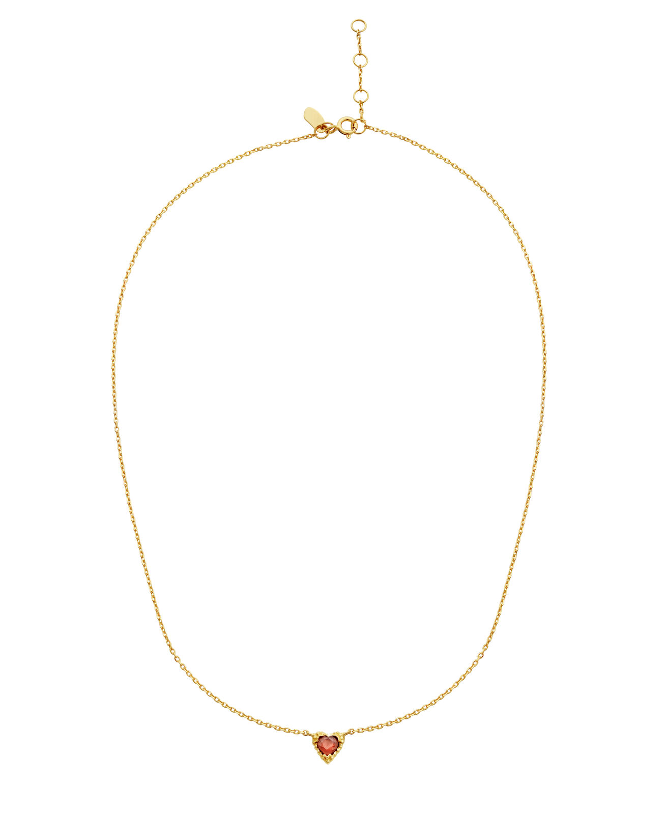 Leoni halskæde fra Maanesten med et hjerte i pink granat og med forgyldt kant og kæde. n smuk kæde at bære om din hals.