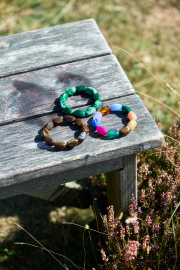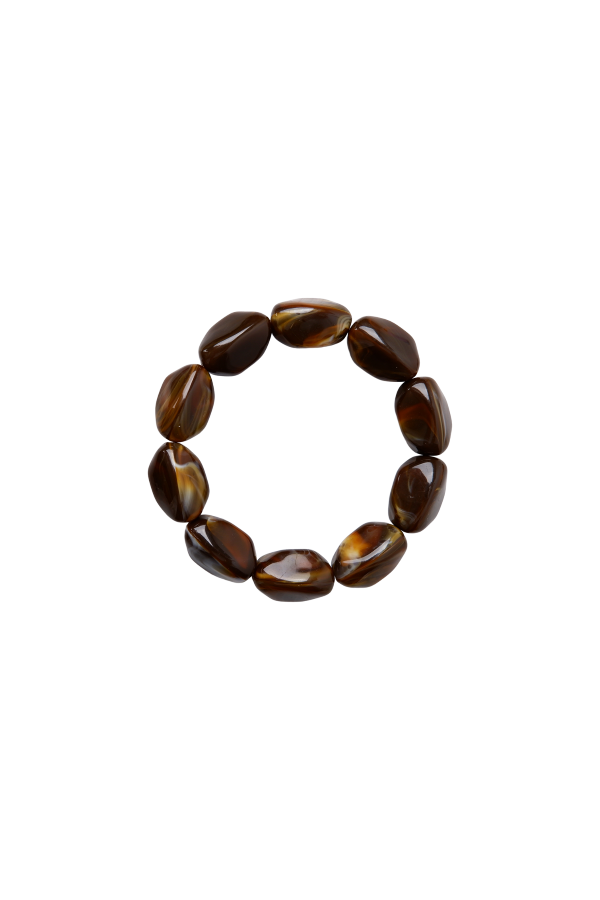 Et mocca-farvet elastik armbånd, som er nemt at tage af og på og som vil pifte dit outfit op. Perlerne er lavet af akryl og de er derfor lette at have om håndleddet.