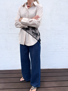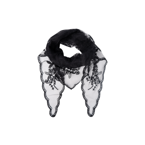 Trekantet tørklæde i transperent blondemateriale. Hop med på den nye trend med at binde det om hoften uden på dine bukser, brug det i håret eller om halsen. Tørklæder giver et personligt udtryk til dit outfit samme med dine andre accessories.
