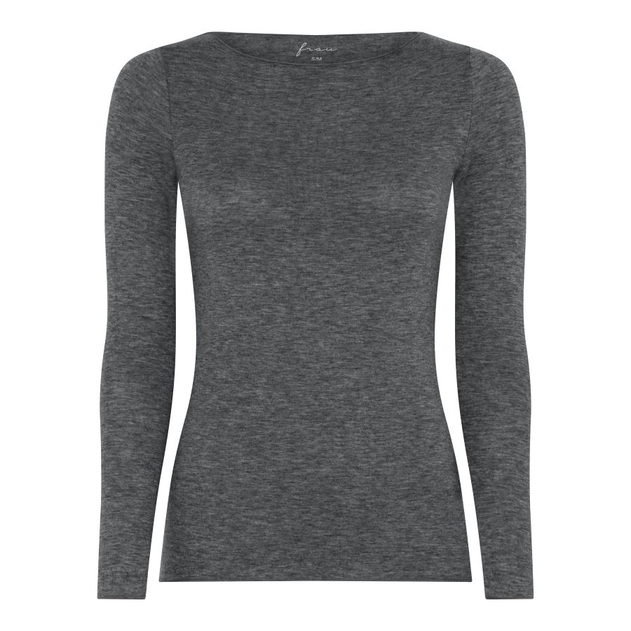 En ultra tynd top med lange ærmer og med 9% cashmere. Den kommer i 2 størrelse og er meget fleksibel. Toppen fra danske FRAU er med lange ærmer og bådudskæring. Den er fin at have indenunder dine skjorter og kjoler for at få lidt mere varme. En dejlig følgesvend hele året.