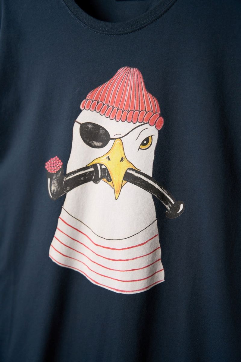 Alle lakors motiver er håndtegnede. Også denne frække måge med rød hue, klap for øjet og en lakridspibe i næbet.