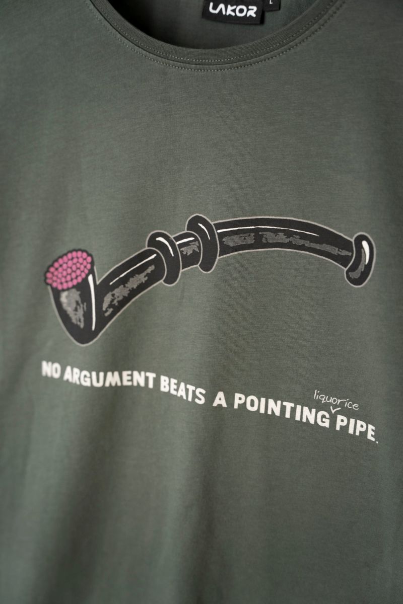Den lækre og smagfulde lakridspibe er her på en grøn T-shirt i et flot broderi. En rigtig klassisker fra Lakor.