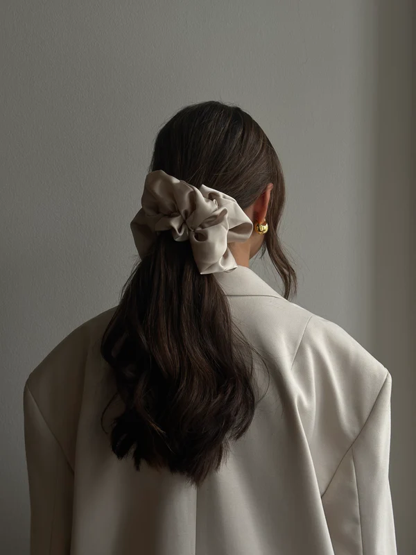 Stor scrunchie i et klassisk look og håndlavet i satinstof. Den er stor og skaber meget volumen i dit hår.