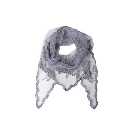 Trekantet tørklæde i transperent blondemateriale. Hop med på den nye trend med at binde det om hoften uden på dine bukser, brug det i håret eller om halsen. Tørklæder giver et personligt udtryk til dit outfit samme med dine andre accessories.