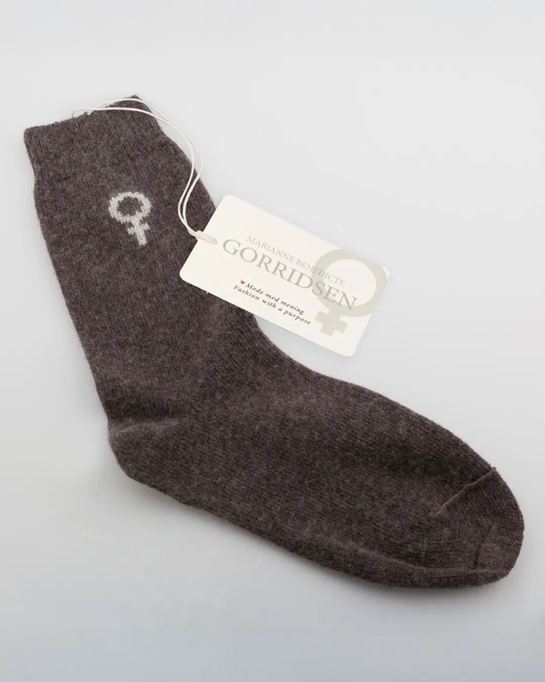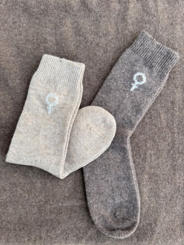 Bløde og lune strømper med en blanding af cashmere, uld og viskose-blend. De er meget bløde og behagelige at have på. Som en ekstrafin detalje er der et kvindetegn strikket ind i strømpen på begge sider af anklen. Magnolia socks har en bred rib ved kanten. Vi synes også de er rigtig gode, som en gave. Et par lune strømper, vil de fleste synes om.