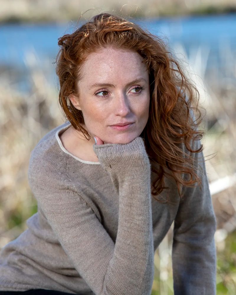 Afrodite er Gorridsens signatur-trøje. Strikket i blødt og fint baby alpaca uld. Afrodite har raglanærmer, som er helt lange, rund hals og rib forneden og nederst på ærmerne. Ved ribben er der en lille rullekant, som giver en feminin afslutning. I den runden hals er der en kontrastfarve, samme farve, som det lille kvindetegn er broderet i nakken. Modellen er tætsiddende, og vil forme sig efter kroppen ved brug. En smuk og holdbar strikbluse - både mht. design og kvalitet.