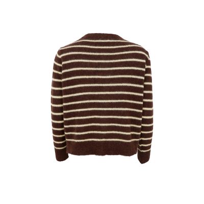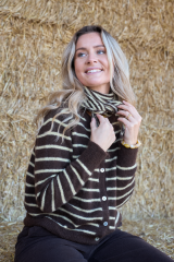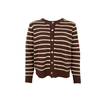Cardiganen er let, men lun, og fungerer perfekt som et ekstra lag på kølige dage. Striberne giver et enkelt og moderne udtryk, og den flotte mocca-farve tilfører varme og dybde til din garderobe.