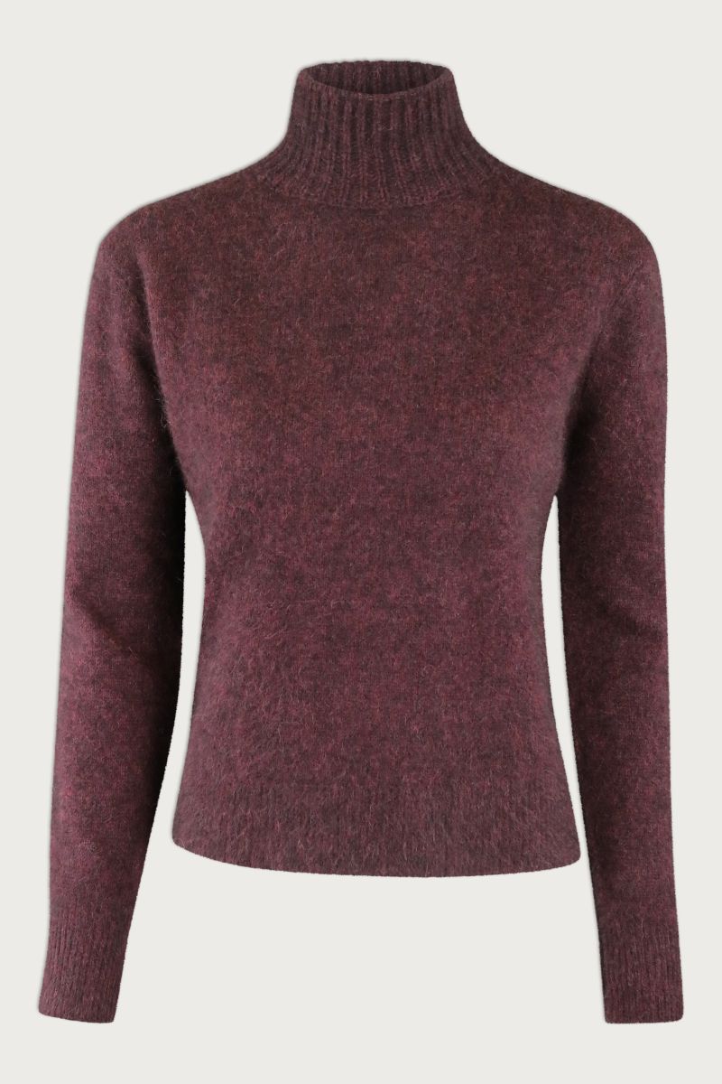 Farven Red Wine Melange er en varm, dyb bordeauxrød nuance med et let meleret spil, der giver liv og karakter til strikken. Den rige farvetone tilfører varme til dit look og passer smukt til både neutrale nuancer som beige, grå og sort – eller sammen med andre dybe farver i efterårspaletten.