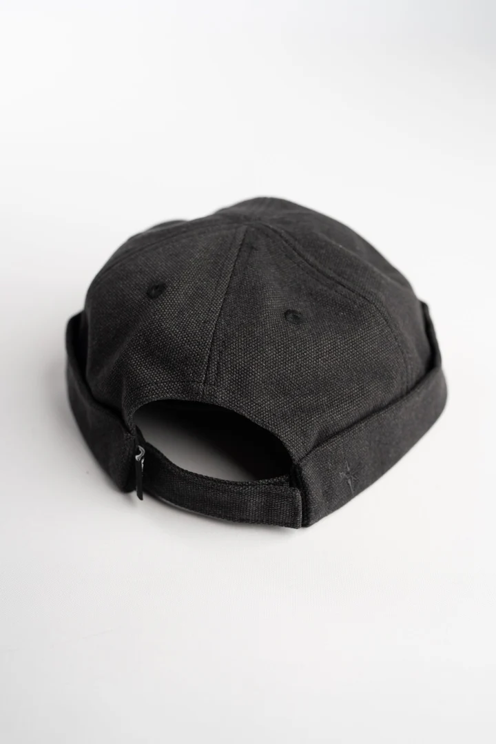 En docker cap inspireret af maritime traditioner, hvor havnearbejder ogsømaænd bar den, for at holde varmen på hovedet. Docker caps er lavet i en kraftig canvas-kvalitet, som klarer det meste vejr. På cappens fold er der broderet en nordstjerne, så du kan holde kursen.