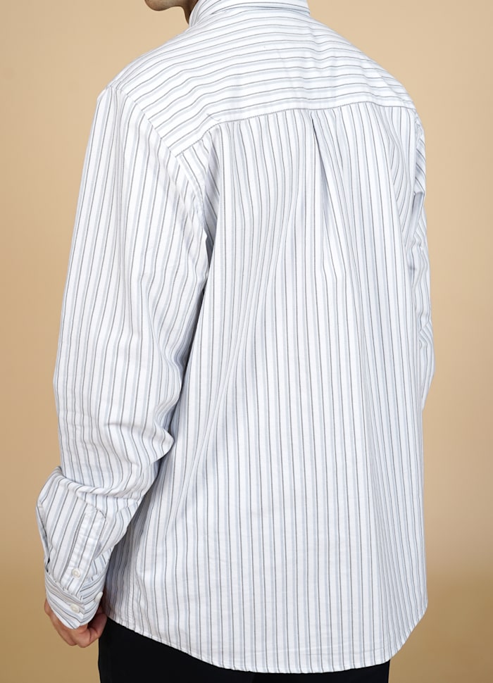 En klassisk Oxford-skjorte i fine, tidløse striber. Skjorten har en traditionel krave, lange ærmer med manchetter og en enkel brystlomme. Stoffet er garment-washed, hvilket giver en blød og behagelig overflade, samtidig med at behandlingen sikrer, at skjorten holder faconen og ikke krymper ved korrekt vask. En stilren og holdbar skjorte, du kan bruge sæson efter sæson.
