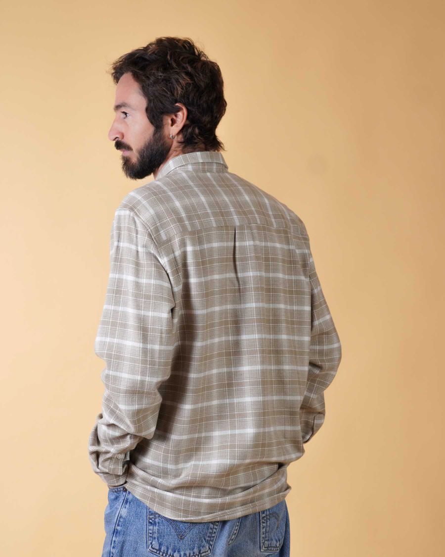 En flannelskjorte i 100% økologisk bomuld, vævet i en blød og behagelig kvalitet, der gør den oplagt til hverdagsbrug. Skjorten har button-down krave, manchetter ved ærmerne og en enkel brystlomme. Knapperne er lavet af corozo – et naturligt og holdbart materiale fremstillet af frøene fra corozo-nødden, som vokser på palmetræer i områder som Peru og Panama.