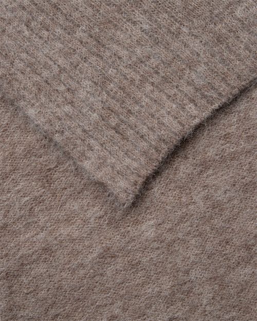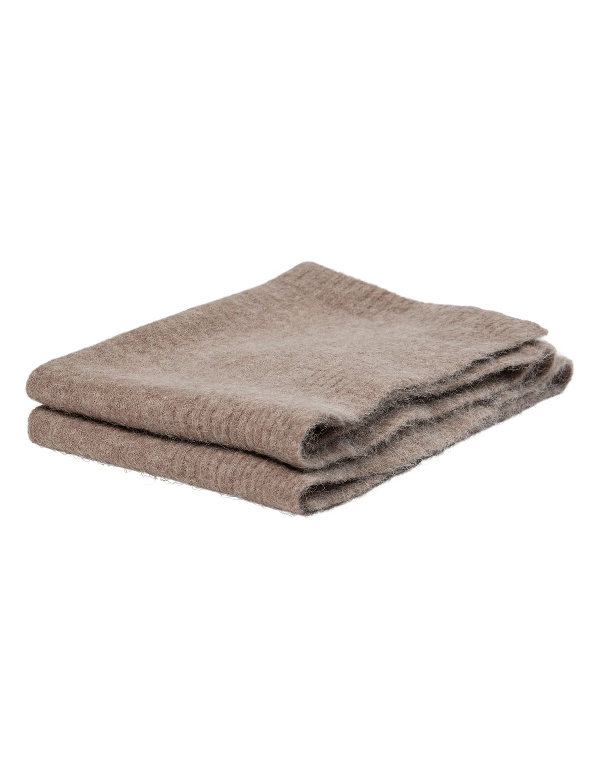 Et stort, blødt og lækkert halstørklæde i en smuk taupegrå farve. Tørklædet har en flot, levende struktur, der giver et varmt og indbydende udtryk. Det er bredt, langt og dejligt at svøbe om sig på kolde dage.