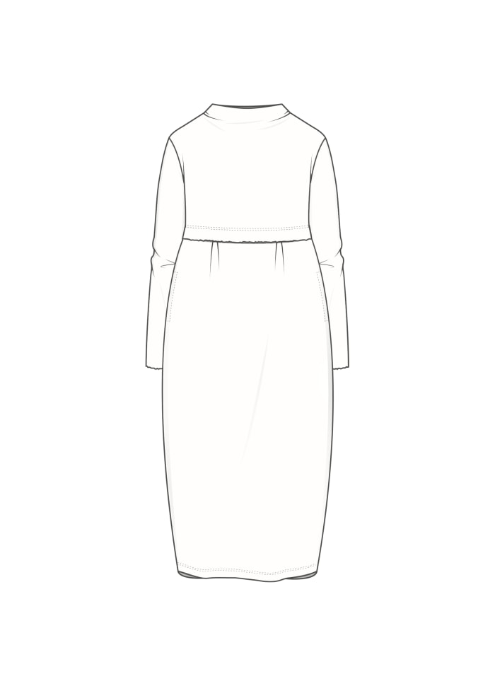 Denne kjole er noget helt særligt. Den er fra danske By Basics og strikket i 100% blød, temperaturregulerende merinould, som føles behagelig mod huden hele dagen. Modellen har en let forhøjet hals, et smukt læg i taljen, sidelommer og en pasform, der er tætsiddende foroven og falder mere løst ned over kroppen. Længden går til under knæet – afhængigt af din højde – og giver kjolen et elegant og tidløst udtryk.