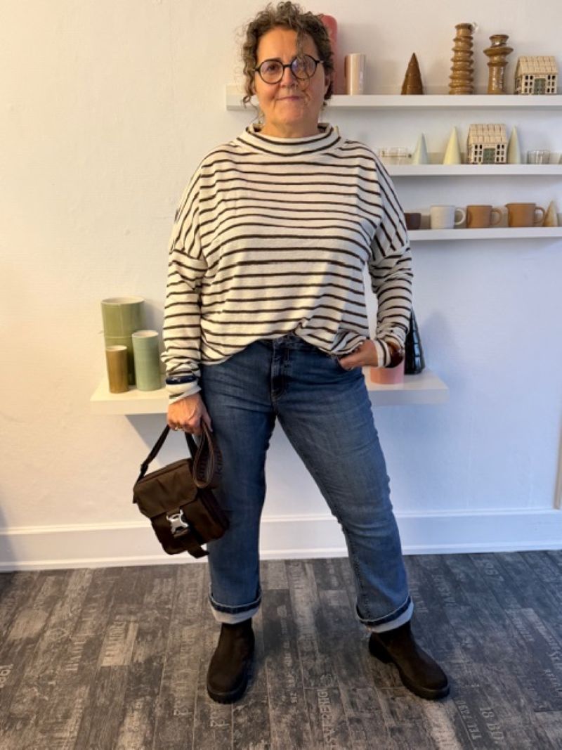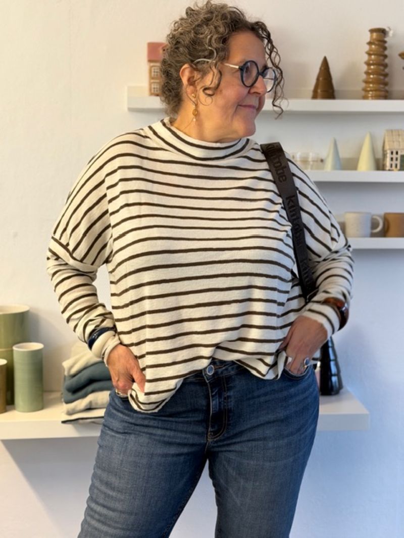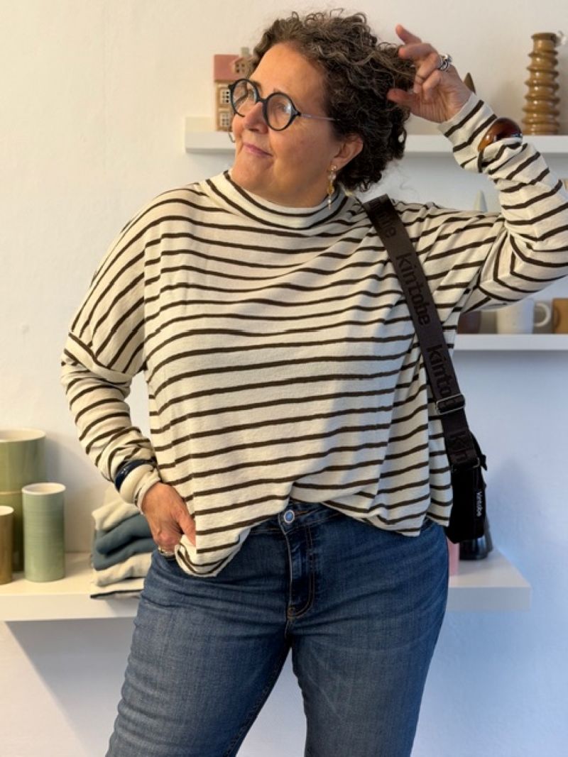By Basics - 4025 wide shirt w/turtleneck - raw white/chestnut