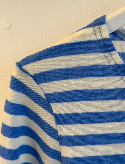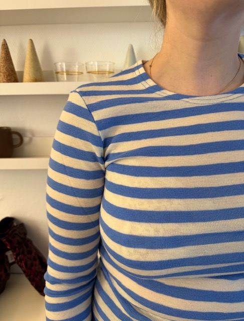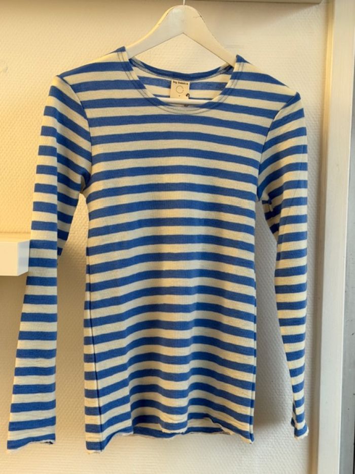 En langærmet bluse fra By Basics med rund hals og de karakteristiske rå kanter, som giver et let og moderne udtryk. Den er strikket i 100% blød merinould og er én af vores absolutte favoritter her i Læsøshoppen – derfor har vi den også i mange farver og stribede varianter.
