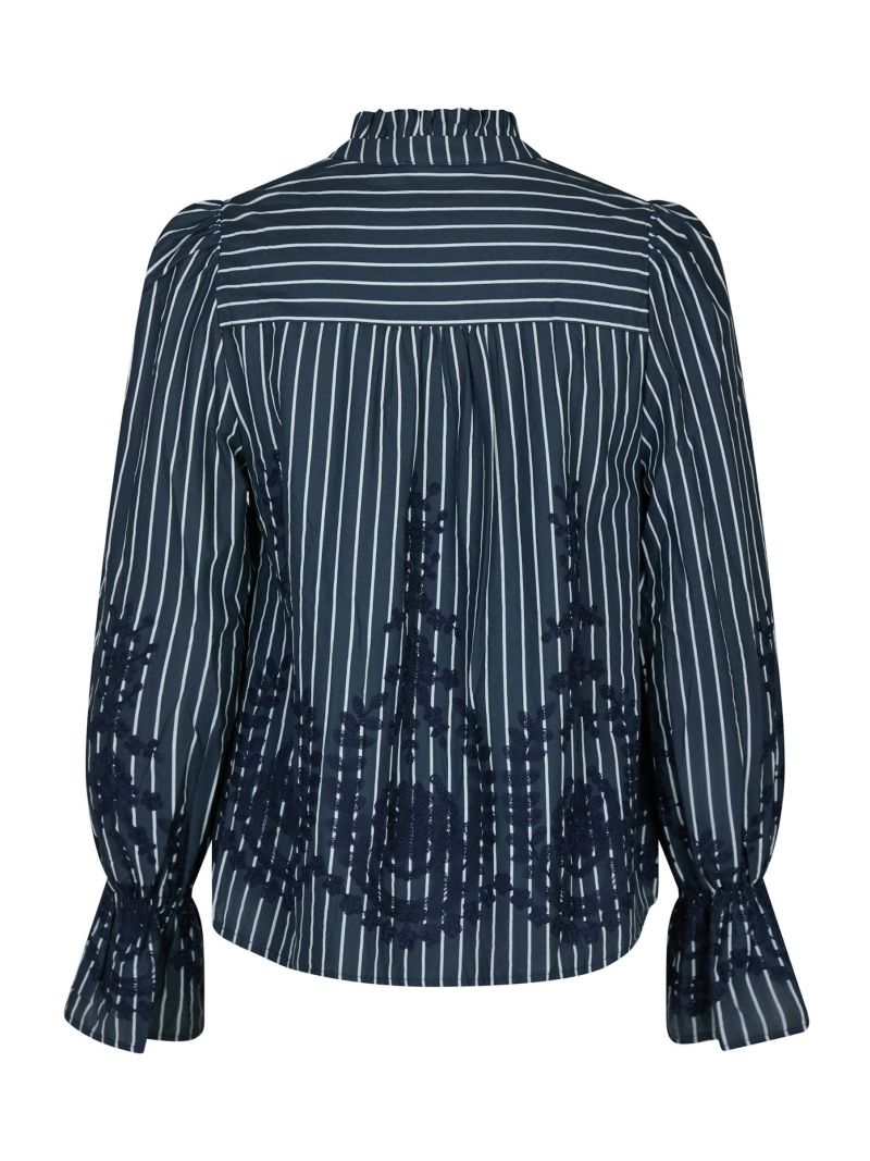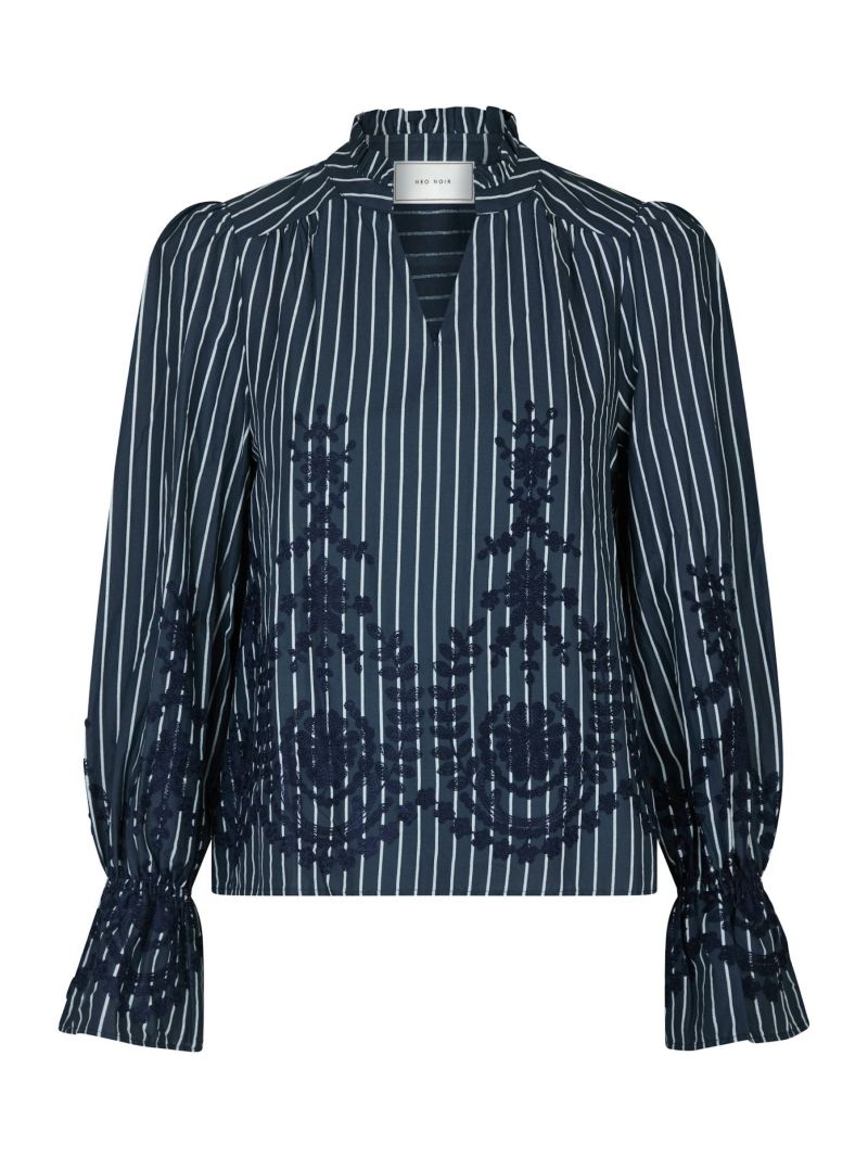 Neo Noir - Amara Stripe Emb Blouse - Navy