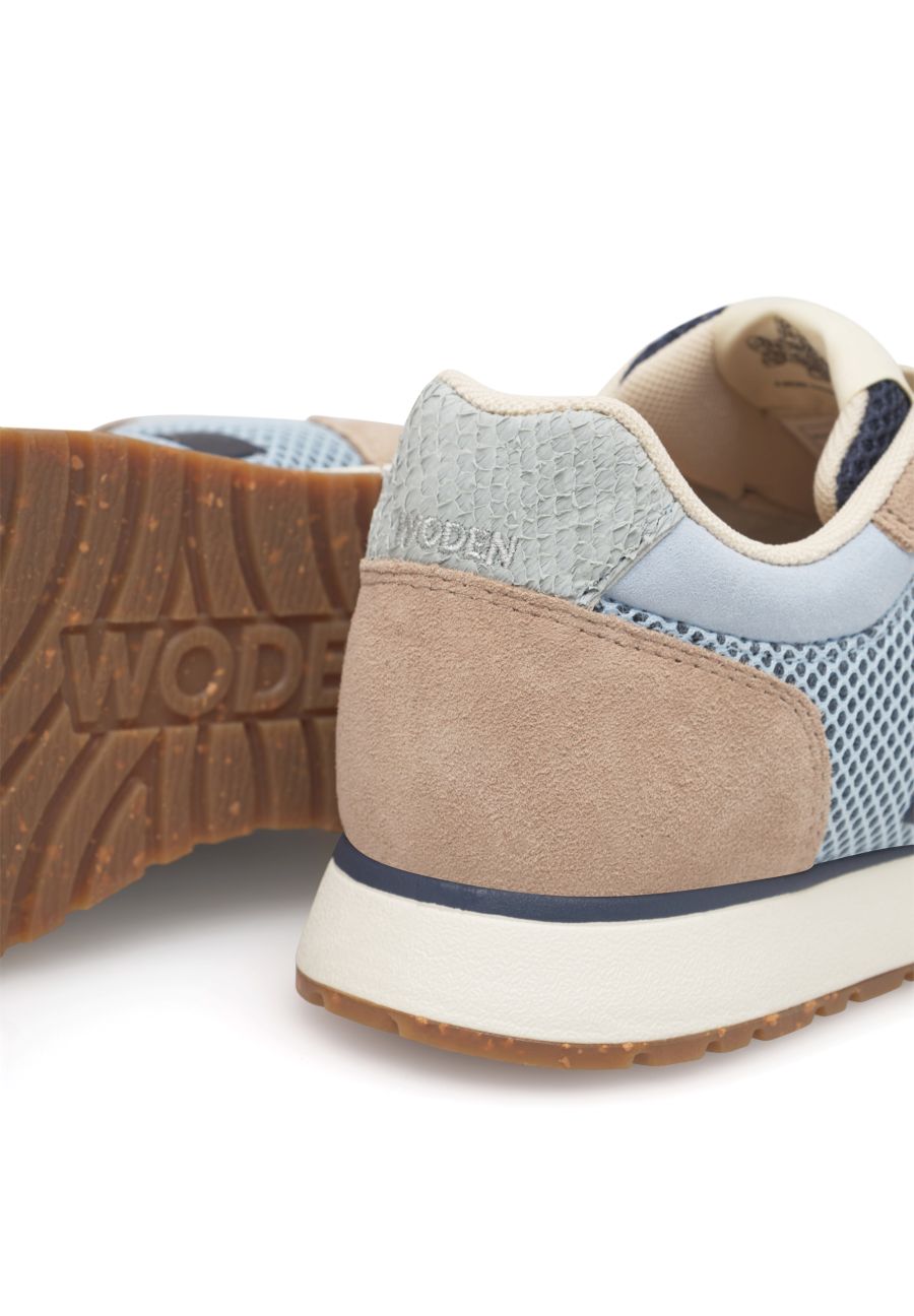Ronja Icon fra WODEN er en sporty og elegant sneaker, hvor funktionalitet og æstetik går hånd i hånd. Modellen har det ikoniske W på siden og er fremstillet i en kombination af tekstil og læder, herunder certificeret ruskind. De farverige detaljer giver skoen et levende udtryk, mens den karakteristiske detalje i fiskelæder tilfører et eksklusivt, nordisk touch – en signatur, der er blevet kendetegnende for WODEN.