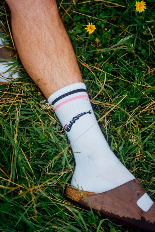 Hvide strømper med motiv af en lakridspibe. Strømpen er meget blød og åndbar, og den har ekstra forstærkning i hælen og tåen. På skaftet er der smalle striber i rosa og sort, som matcher lakridspiben. LAKRIDSPIBE SOCKS fra Lakor er en ægte far, bror, søn gave.