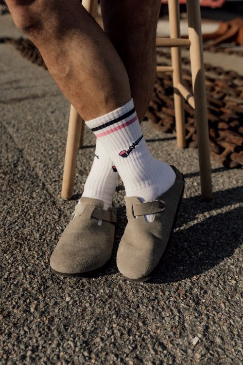 På skaftet prydes strømperne af smalle striber i rosa og sort, der matcher lakridspiben og giver et sporty og cool look. LAKRIDSPIBE SOCKS fra LAKOR er oplagte som gave – perfekt til far, bror eller søn (eller bare til dig selv).