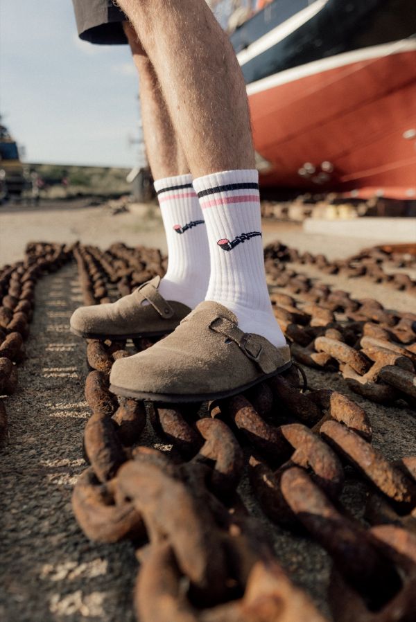 Klassiske hvide tennisstrømper med et lille broderet lakridspibe‑motiv – en humoristisk og genkendelig detalje i ægte LAKOR‑ånd. Strømperne er bløde og åndbare og har ekstra forstærkning ved hæl og tå, som giver god komfort og længere holdbarhed.