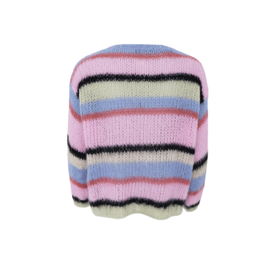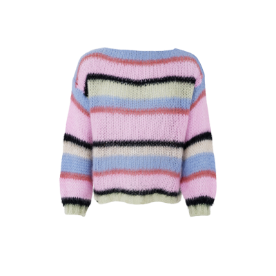 En skøn strik i Black Colours velkendte pasform og kvalitet. Strikken er let og luftig med en blød mohairblanding, der gør den behagelig at have på og nem at bruge på tværs af sæsoner. Farverne er friske og harmoniske, og de varierende striber spiller smukt sammen og giver et levende, men afbalanceret udtryk.