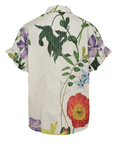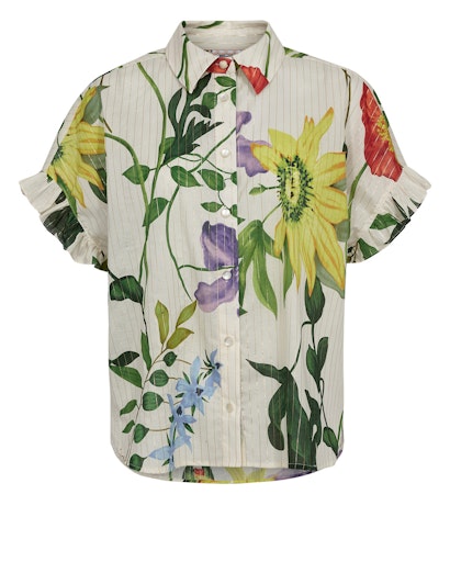 Fin og let skjorte med et smukt print og diskrete glimtende detaljer. Skjorten har korte drop-down ærmer med en lille påsat flæsekant, som giver et feminint og afslappet udtryk. Den er designet med klassisk skjortekrave og gennemknapning foran, så den er nem at style både åben og lukket.